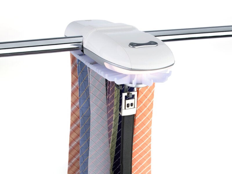 Supersmooth elektronisk slipsebøjle, som rummer 54 slips og fire bælter. Med et enkelt tryk på en knap roterer du slipsene, og den indbyggede belysning gør, at du altid finder det rigtige slips!
